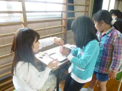 今日の放課後子ども教室では、浅川児童館の出張児童館がありました。児童館の先生がプラ版や積み木、オセロゲームなど、いろいろな遊び道具をもってきてくれました。体育館前で待ちわびていた子供たち。児童館が始まると、一斉にプラ版コーナーに集まっていました。