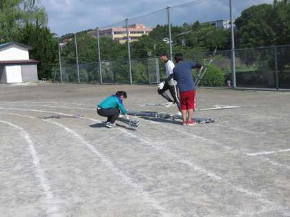 そして、いよいよテントの組み立てを始めました。組み立てやすいように並べておきます。