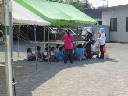 運動会の前日準備には、委員会活動をしている高学年の児童が頑張って準備をしてくれています。子どもたちは、担当の先生方から、準備作業の内容や流れなどについて最初にお話を聞きます。何をするのかを知り、自分のやることをしっかりとイメージしていました。