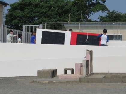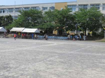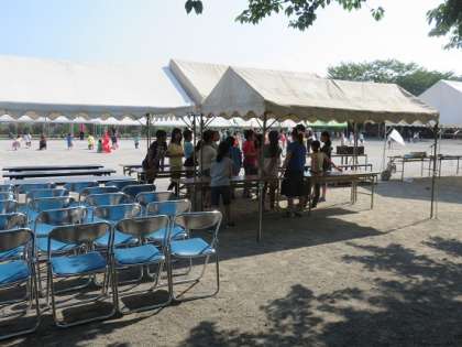 会場準備の子どもたちは、運動会当日にお見えいただくお客様の来賓席や優先席の準備をしてくれていました。また、採点係の子どもたちは、採点版の設置のお手伝いをしていました。
