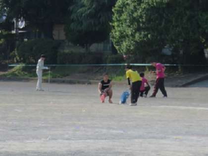 コースのライン引きとともに、会場のロープ張りの杭打ち、そして、傷んだロープの補修もして、子どもたちがつまずいてけがをしないように整えていました。