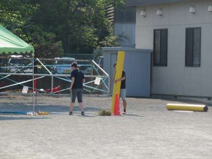 今年新しいした入退場門を設置したり、当日にトラブルが起きないように放送機器の点検もしていました。
