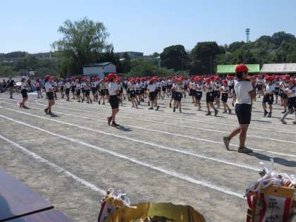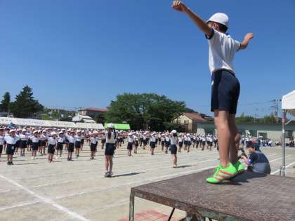 また、体操係の子どもたちは、けがの防止のために準備体操や整理体操のお手本を全校児童の前で示してくれていました。