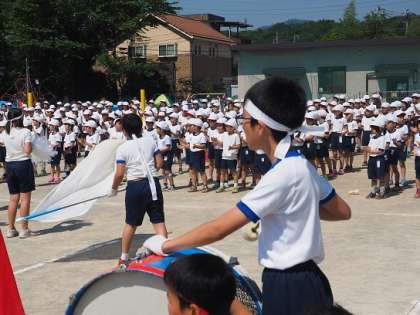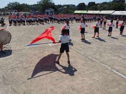 赤組も、白組も、応援団の子どもたちの元気な声にリードされて、応援が行われました。また、互いの健闘を祈念してエール交換をしていました。