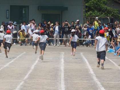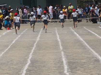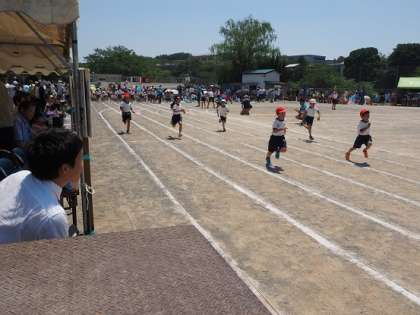 2年生が一所懸命走っている様子を、1年生の時の担任の先生の村山先生がテントの一番前の所から応援してくれていました。そして、先生の前を勢いよく駆け抜けていきました。