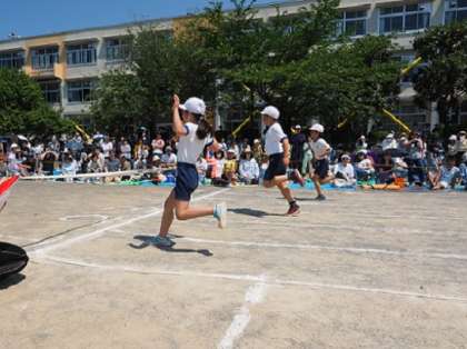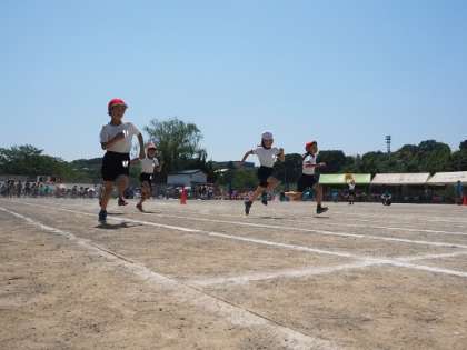 100mを走った5年生は、腕が大きく振れていました。体育の授業で学んだ速く走れるヒントを活かしている子が、足(膝)が高く上がった走り方になっていました。