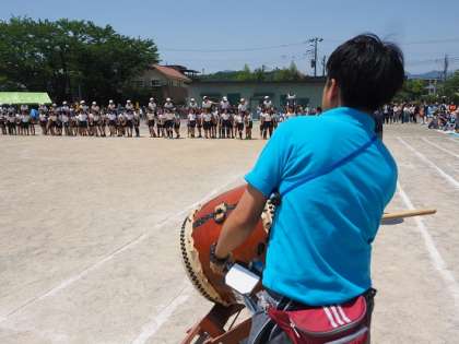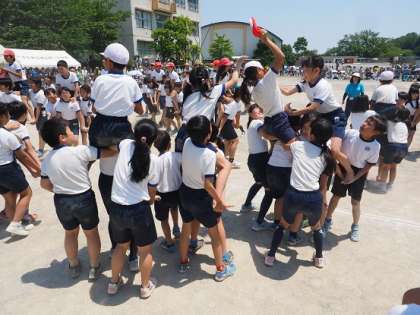 5・6年生の子どもたちが、騎馬を作り、紅白帽子や大将の兜を奪い合います。迫力のある戦いが、いろいろな場所で行われていました。