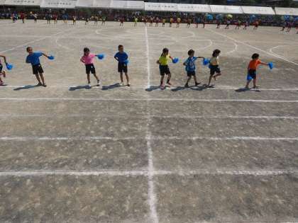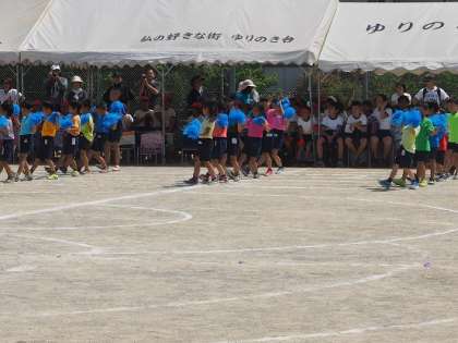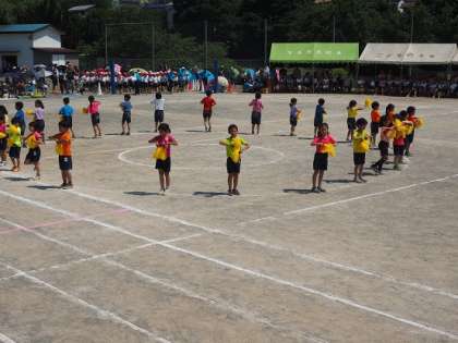色とりどりのポンポンを手に持ち、カラフルなTシャツを着た2年生が、高くジャンプしたりと大きな動きで踊りました。昨年の1年生の時の動きとは、大きく異なり、自信満々の動きに、一年間の成長を感じさせられました。