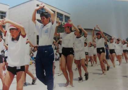 20前の運動会で踊られた当時の『横一小音頭』のスナップ写真が、卒業アルバムに載せられていました。
