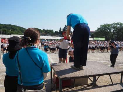 暑い日の運動会でしたが、閉会式でも子どもたちはしっかりとお話が聞けていました。残念ながら準優勝になってしまった赤組の応援団長も充実感に満ち満ちた笑顔で準優勝杯を受け取っていました。そして、