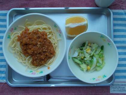 本日は、人気メニューのスパゲッティーミートソースを作りました。使用した玉ねぎの量は45kg(約180個分)です。みじん切りにして、1時間半かけて煮込んでいきました。今の時期は新玉ねぎが旬にあたり、特に水分を多く含んでいます。時間をかけ、ゆっくり火にかけていくことで、甘さが引き立たせるよう工夫しました。
