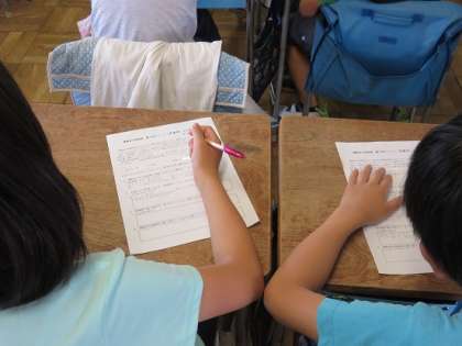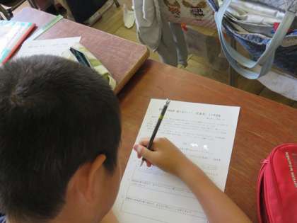 5年生の教室でも、組体操の「振り返りシート」を行っていました。初めての組体操の「振り返りシート」の記入なので、先生の説明に合わせながらシートに取り組んでくれていました。