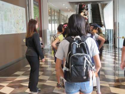 サザンスカイタワー内では、劇団四季の方の案内表示にしたがって、静かに行動ができていました。5年生の連合音楽会の時の経験を活かして行動していました。