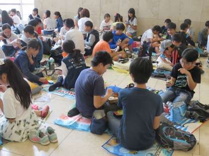 中ほどの休憩では、ホアイエの椅子に座り手早く喉の渇きを解消したり、トイレを済ましたりしていました。そして、今年は、ホール内で食事ができることになったので、静かな中にも、楽しそうにお弁当を食べていました。