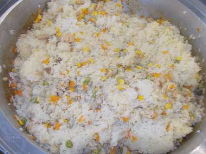 ジャンバラヤとは、スペインで生まれた「パエリア」が、アメリカに持ち込まれたことが由来とされています。エビやベーコン、にんじん等の野菜を、チリパウダーで味を付けました。アメリカでは、ハンバーガーと同じぐらい、日ごろから食べられている家庭料理です。にんじんやコーン、グリンピースを混ぜ込んだため、野菜の彩が豊かなご飯になりました。