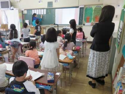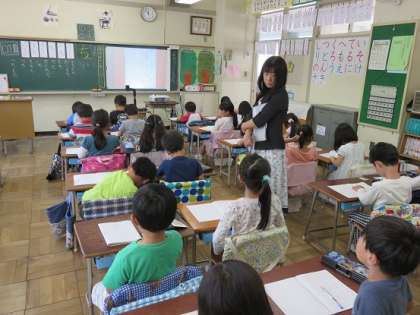 この時間の授業でも、副校長先生が、しっかりと授業観察を行い、子どもたちにとって学びこたえのある、よい授業づくりに導こうとしています。