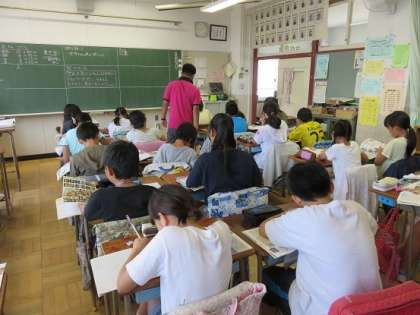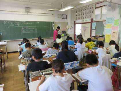 今日の学習課題「聖武天皇は、どのような目的で大仏づくりを行い、それは、どのように進められたのでしょうか。」に対して、子どもたちは、調べたことをを元に、一人で自分の考えをまとめます。そんな場面でも、どのように考えをまとめたらよいか戸惑う子に対して、先生は、こまめに机間支援を行って、支援を行っていました。