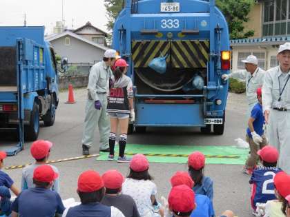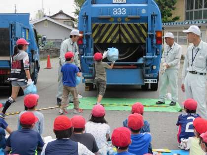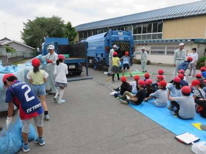 子どもたちは、順序良く、清掃事務所の方から指示された道筋を通って、上手に投げ込んでいました。