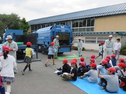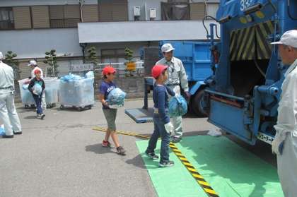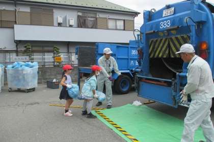 子どもたちが投げ込む“体験用ゴミ袋”は、当然ですが、におい(悪臭)もしません。また、生ごみなどからの液体もでていません。竹串などが折らずに入っていて怪我をすることもありません。さらに、カラスなどが突いて袋が破けてしまっていることもありません。本当にたくさんのゴミを収集することが大変だと、子どもたちに想像をさせていきたいと考えています。