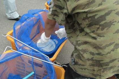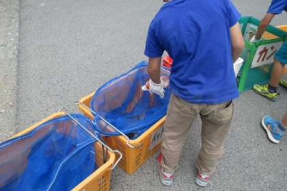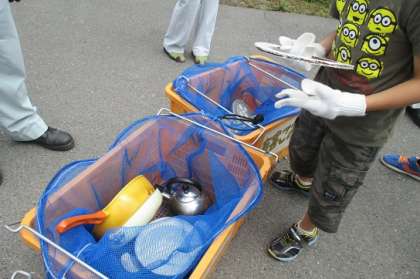 ペットボトルはどこかな、金物はどこかなと“体験用のゴミ”を、分別していました。