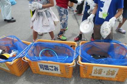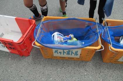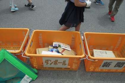ダンボールに、古新聞。可燃ごみに、古着・古布。たくさんの分別の項目があり、子どもたちは、考え考えしながら入れていました。