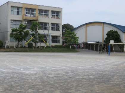 「訓練、訓練、今、地震がありました。教室にいる人は、机の下に潜りなさい。校庭に居 る人は、校舎から離れて、静かに座りなさい。体育館にいる人は、真ん中に集まって座 りなさい。」