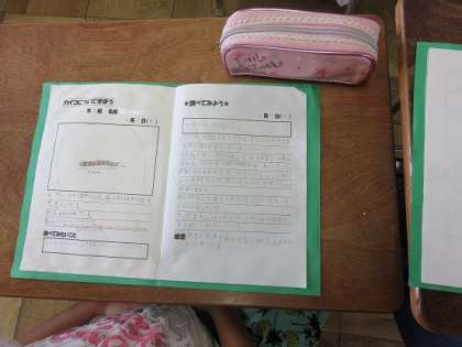 子どもたちは、カイコの成長の様子を観察したり、カイコなどに関係すること調べたりして、ノートにまとめています。