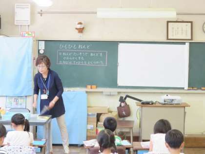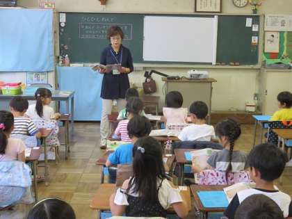 学校公開の1時間目、1年生の教室では、図工の学習が行われていました。新しい粘土セットを机の上に出して、どんなお勉強をするか、1年生は、興味津々の面持ちで先生のお話を聞いていました。