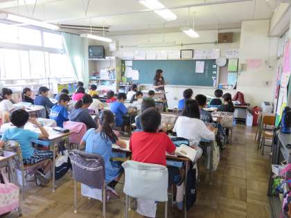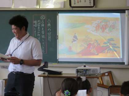 5年生の子どもたちは、『古典を音読し、だいたいの意味の内容をつかみ、すきな一つを暗唱しよう。』のめあてで、古典の言葉を勉強していました。