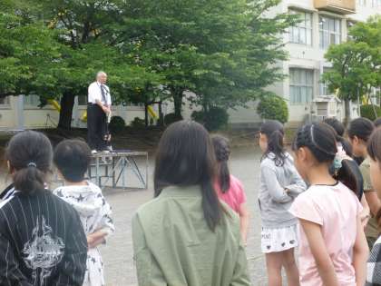 6月はふれあい月間です。児童朝会で、校長先生から「大切にするもの」というお話がありました。校長先生が大切にしている宝物のお話です。その一つが、自分が努力した結果としてもらった中学校時代の賞状だったり、大切な人の形見だったりと、お金では買えないものですが、今でも大切にしているというお話でした。