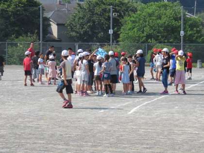 この『なかよしあそび集会』を通して、上の学年の児童のリーダーシップの力や下の学年の児童のフォロァーシップの力を培います。また、思いやりの心を醸成することもねらっています。
