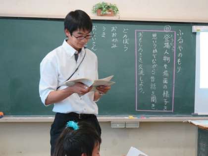子どもたちは、先生の朗読を聴いて、この『ふるやのもり』のお話のイメージを膨らませ、面白さを見つけていきます。