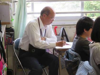本市では、若手教員の授業力等の向上のために、市の教育センターにおられる研究主事の先生が、巡回指導に来校されます。初任者の教員の時に初任者研修でお世話になった若手の教員は、授業参観や研究協議会に参加して、自分の授業改善に活かしています。