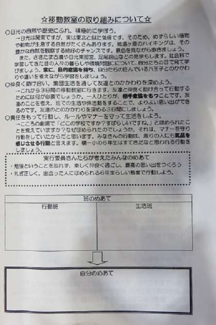 6月26日から6月28日まで、6年生は日光移動教室に行きました。宿舎の中では、男女ともに、静かに仲良く過ごしていました。UNOやトランプなどして遊んでいました。6年生のみんなは、これからも、日光のことを生かして、学校でも静かに、けじめをつけて頑張りたいと思います。