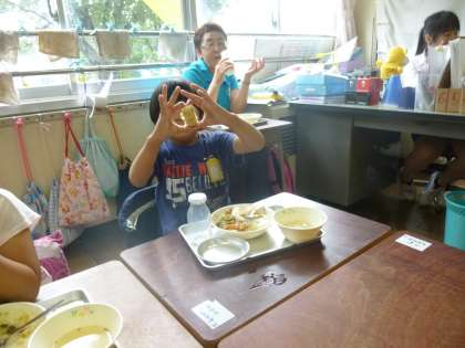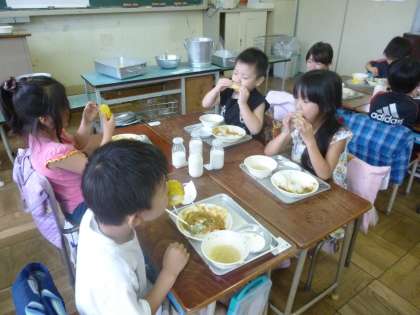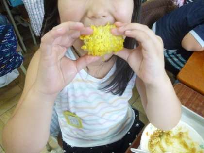 1年生がむいてくれたトウモロコシは、その日の給食に出されました。甘くて愛情いっぱいのトウモロコシは、いままで食べた中で一番おいしかったですよ!