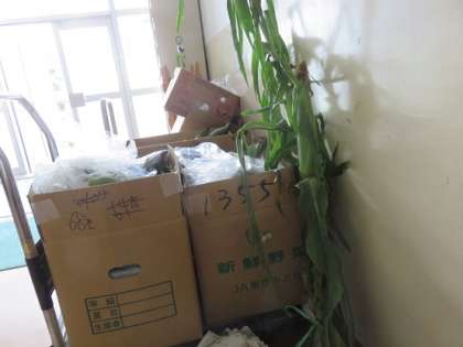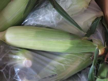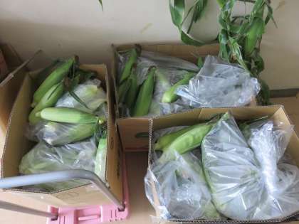 1年生がむいてくれたトウモロコシは、朝早くに納品された新鮮なトウモロコシでした。