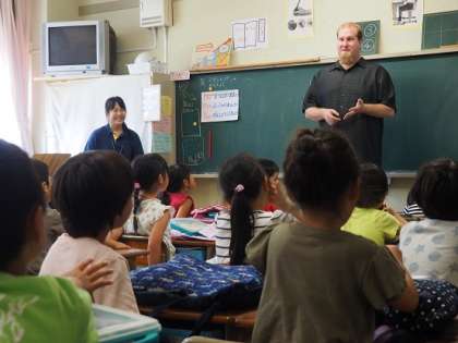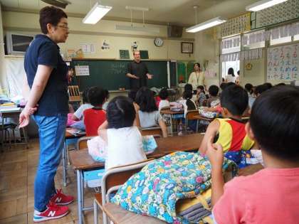 1年生の子どもたちも、ブランドン先生のお話を、身を乗り出して聞き入っていました。