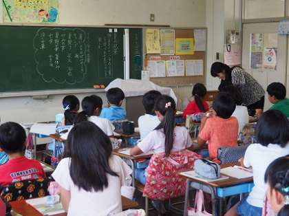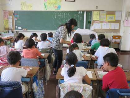 そして、この教室でも、先生がこまめに子どもたちに机の間を回って相談にのってあげたりしていました。また、すてきな作品ができていると、先生からのスタンプがもらえていました。