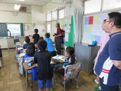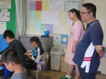中国からの留学生の方は、日本語も上手にお話をされるのですが、本校に来校させるときは、東京家政学院大学の指導担当の先生もご一緒に来校されます。また、学校コーディネーターの森田さんも一緒に参観をしてもらいました。