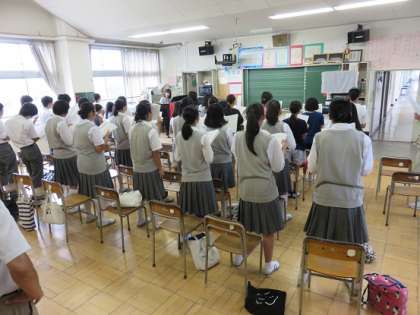 私は、6時間目に館中のみなさんと音楽の授業をしました。館中のみなさんは、すごく声がキレイで、特に、女子は、声が高くて、きれいな歌を歌ってくれました。