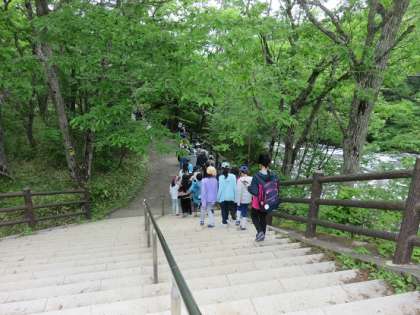 昔に比べ、龍頭の滝の横の階段の道も整備され、とても歩きやすくなったこともありますが、瀧の眺めと滝の上を通ってくる涼しい風が、子どもたちの歩きを早めてくれていました。