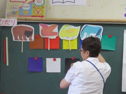 What’s animal is this?の発問にも、“かわいく”声を揃えて答えていました。子どもたちとの授業を彷彿させていました。