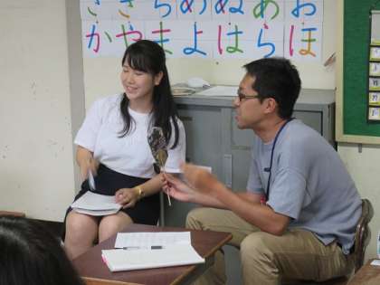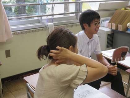 「子どもたちへ行うときは、自信がない子もいるので、2人組やグループで遣り取りをさせると、自信を持ってできます。」