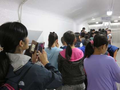 展望デッキからエレベーターの乗り口に向かうために、集合するときも、“察する気持ち・察する力”を発揮して、周りの方々に不快な気持ちを抱かせることなく、人数確認をしていました。