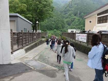 子どもたちは、一時間ほどバスの中で過ごすと、足尾銅山に到着しました。事前の調べ学習で調べたことを、実際に目で確かめます。