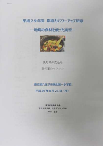 本校では、3年前より、近隣の東京家政学院大学の先生にお出でいただいて、“食育”を中心に研修会を企画しています。今年も午前中は、小口悦子先生に教えていただいたことを踏まえて、6つのグループに分かれて調理実習を行いました。