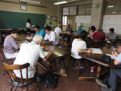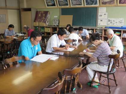 打ち合わせに参加された地域の方々や本校の教員は、テキストなどを見ながらしっかりと聞いていました。特に、今年度、本校に異動したきた教員は、本校の漢字検定の行い方が初めてなので、しっかりと聴いていました。