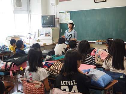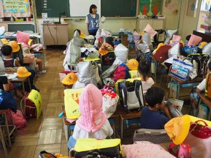 「今日は、校舎内でのお家の方への引き渡しの訓練となります。」の校内放送で、身支度をし、学級で、担任の先生から地震などの災害についての話を聞きました。