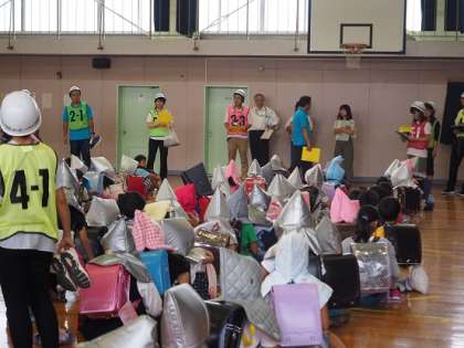 実際に、大地震が起こり、電車・バス等の交通手段が止まってしまった場合は、引き取り訓練とは異なり、引き取りに来られるご家庭は、もっと少なくなると考えております。そのような場合は、お迎えに来られるまで、または、ご連絡がいただき対応がご相談」できるまで、子どもたちは、学校で過ごしてもらうことになっています。