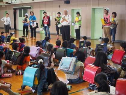 「実際に、大きな地震があったら、学校に残る子どもたちは、今日の2倍よりも多いと思っています。今日、体育館に残った人は、どのように体育館で行動したか、覚えておいて、教えてあげてください。」
